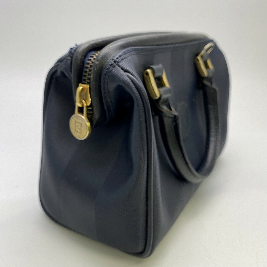 [USED/中古]FENDI フェンディ ハンドバッグ ミニボストンバッグ がま口仕様 ペカン 紺 ネイビー PVC レザー Bランク【中古】