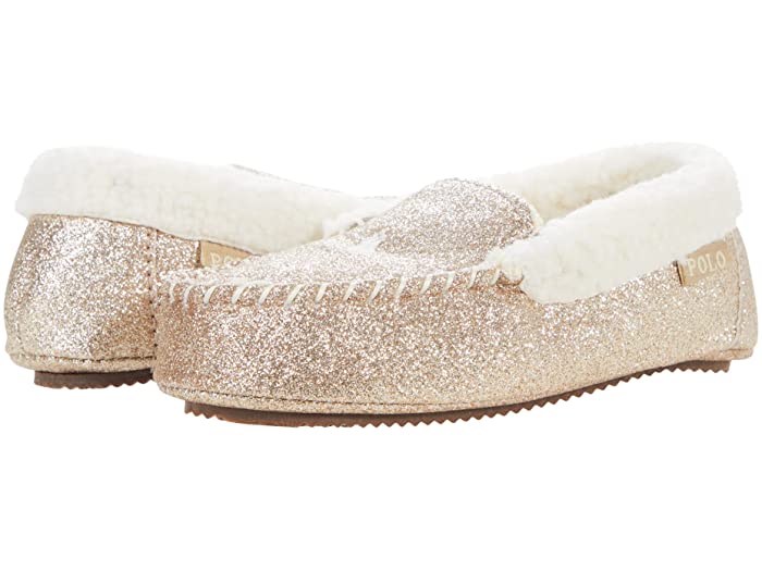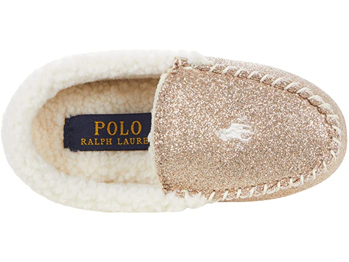 (取寄) ラルフローレン キッズ ガールズ デジ 4 モカシン スリッパ (リトル キッズ) Polo Ralph Lauren Kids girls Dezi IV Moccasin Slipper (Little Kid) Gold Glitter/Cream Pony Player