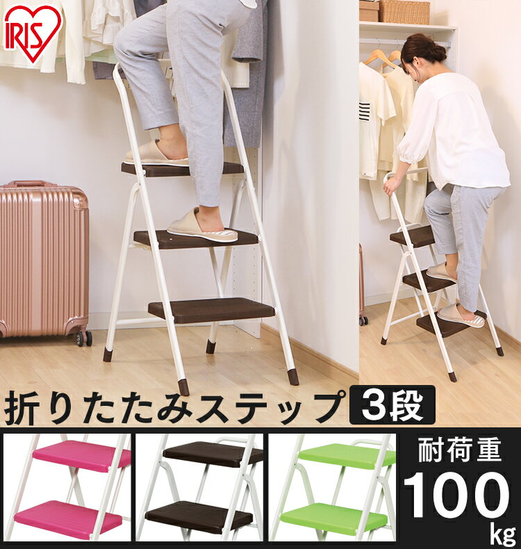 ●商品サイズ(約):幅40×奥行60×高さ100.5cm●折畳み時サイズ(約):幅40×奥行8×高さ114.5cm●ステップの高さ(約) 1段目:23.5cm、2段目:45cm、3段目:67cm●重さ:約5.4kg●耐荷重:約100kg(全体)●材質 フレーム:スチール ステップ:ポリプロピレン★