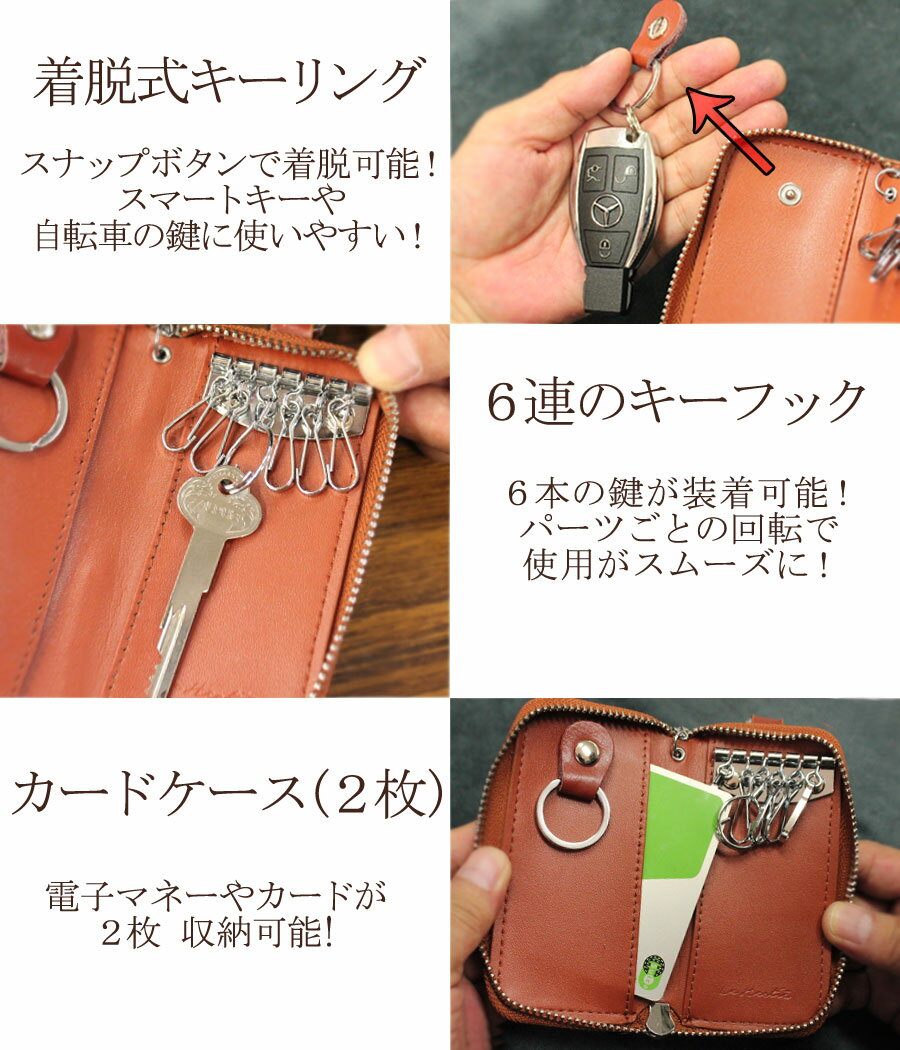 キーケース スマートキーケース メンズ レディース 本革 6連 ラウンドファスナー スマートキー 車 革 レザー 可愛い おしゃれ 男性 女性 人気 ギフト プレゼント 母の日 父の日 キーホルダー 5色
